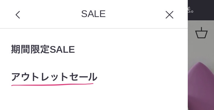 アウトレッセールから、セール商品の画面へアクセスできます。