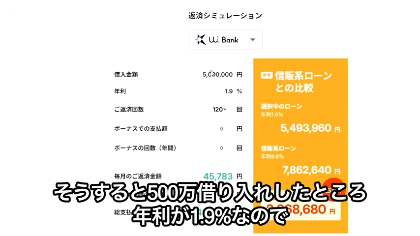 例えば、Ui Bankさんから借りる場合で返済シミュレーションもできます。