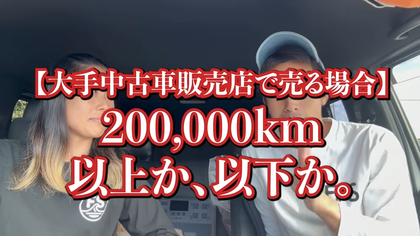 大手中古車販売店で売る場合、走行距離が200,000km超えているかで大きく相場が分かれるそうです。