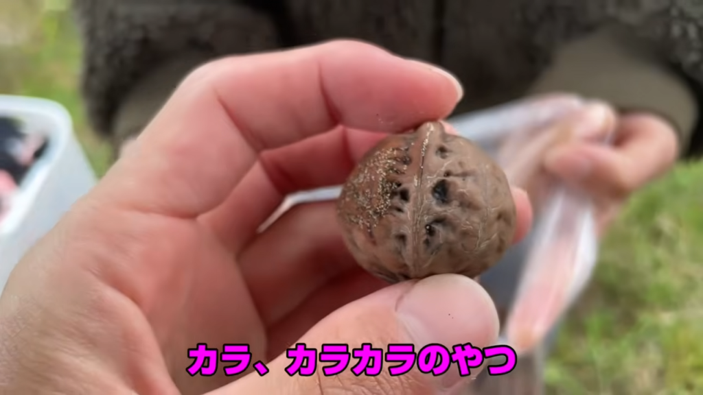 長野県は胡桃の生産量は日本一で、川を伝って上越の海岸に胡桃が流れ着くようです。