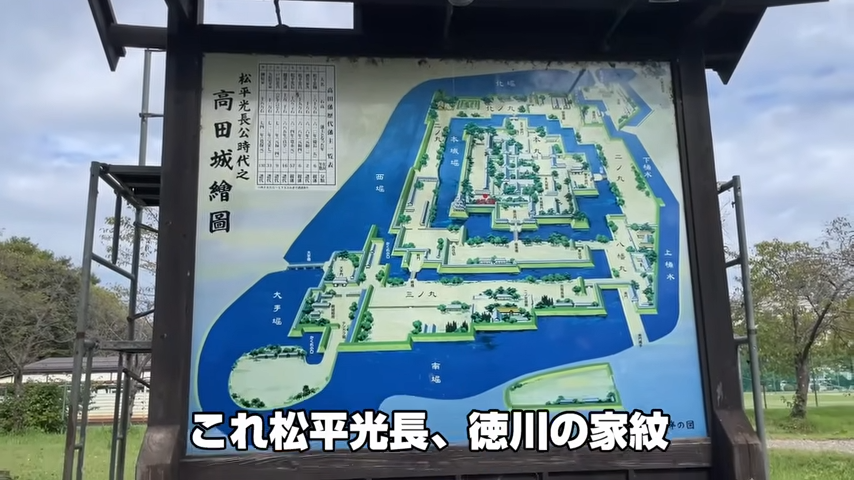 高田城は1870年に火災で焼失しているので、現在はその跡地と再建された三重櫓だけが公園として残っているそうです。