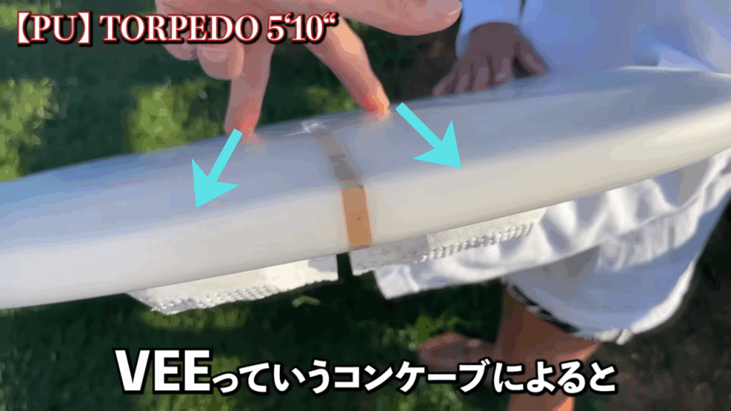 続いてコンケーブですが、今回ご紹介する2種類のサーフボードはそれぞれコンケーブが違います。