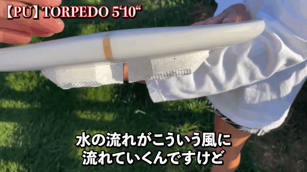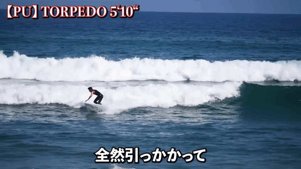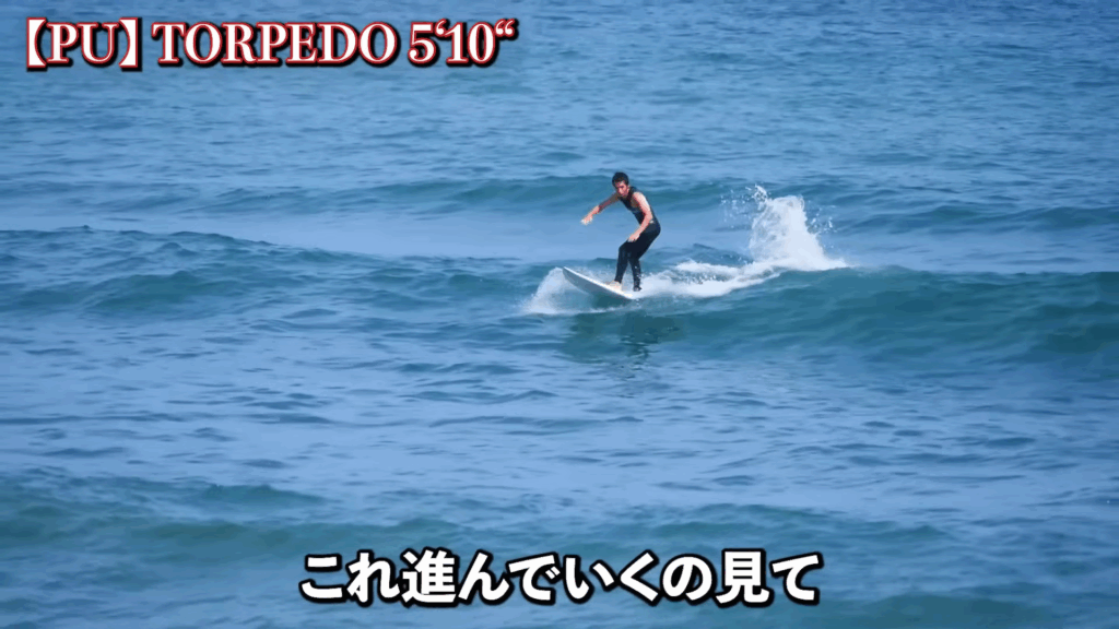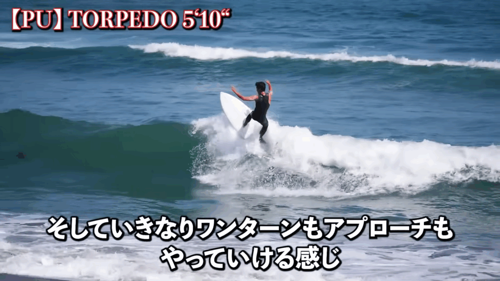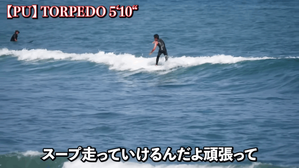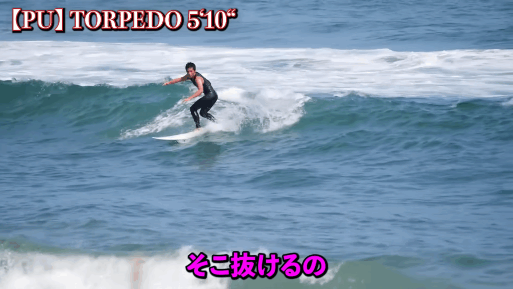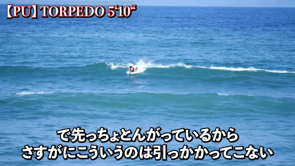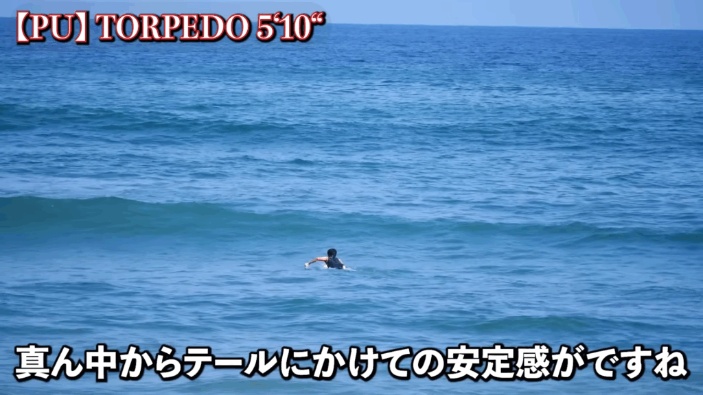 トルペドは、スクウェアテールに浮力があるので安定感があるんですよ。