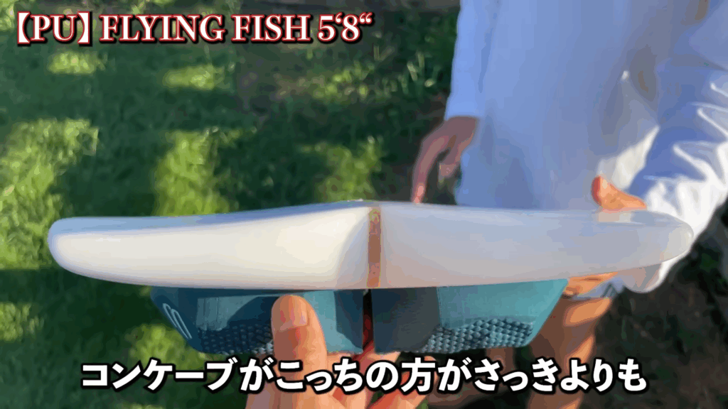 乗り比べする前に予想できることとしては、テールの形状がそもそも違うので、フライングフィッシュのほうがテールが動かしやすいのではないかと思います。なぜかというとボリュームがないから。