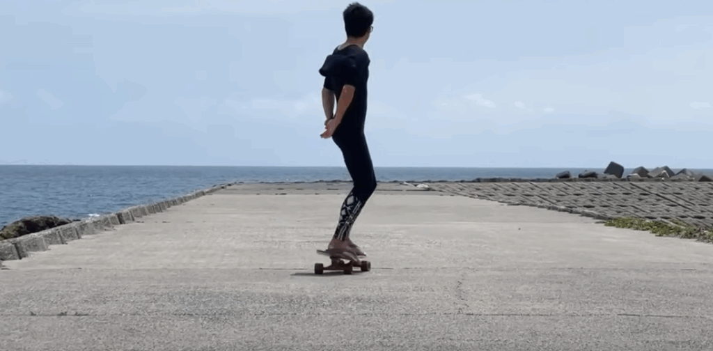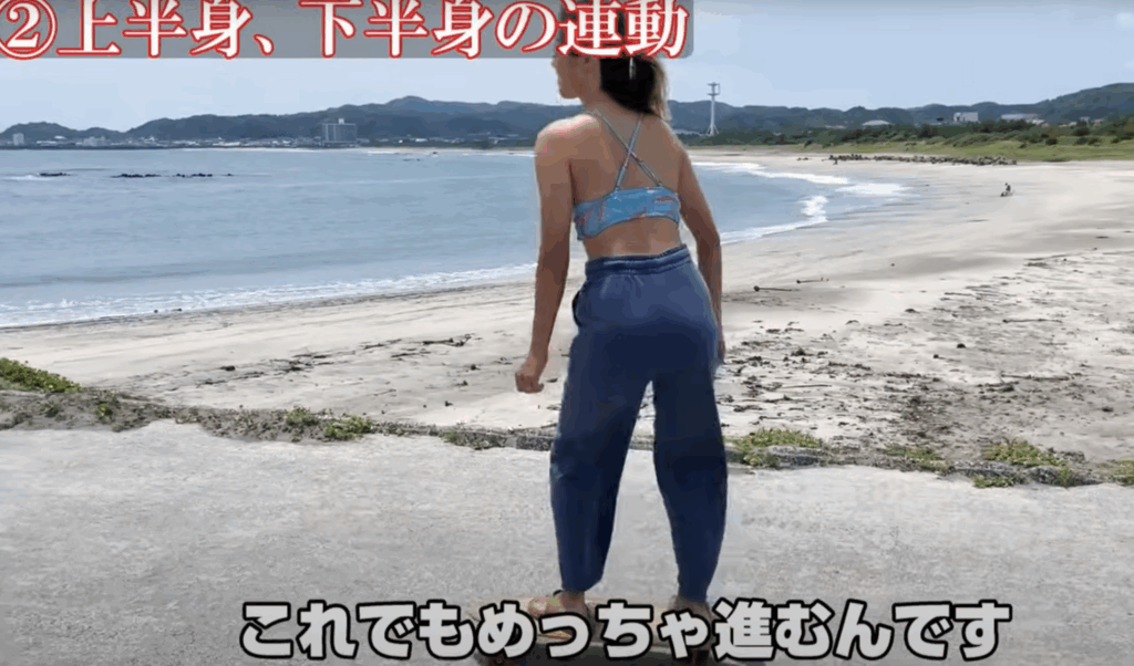 膝の屈伸運動だけでもサーフスケートが進むことがわかるはずです。