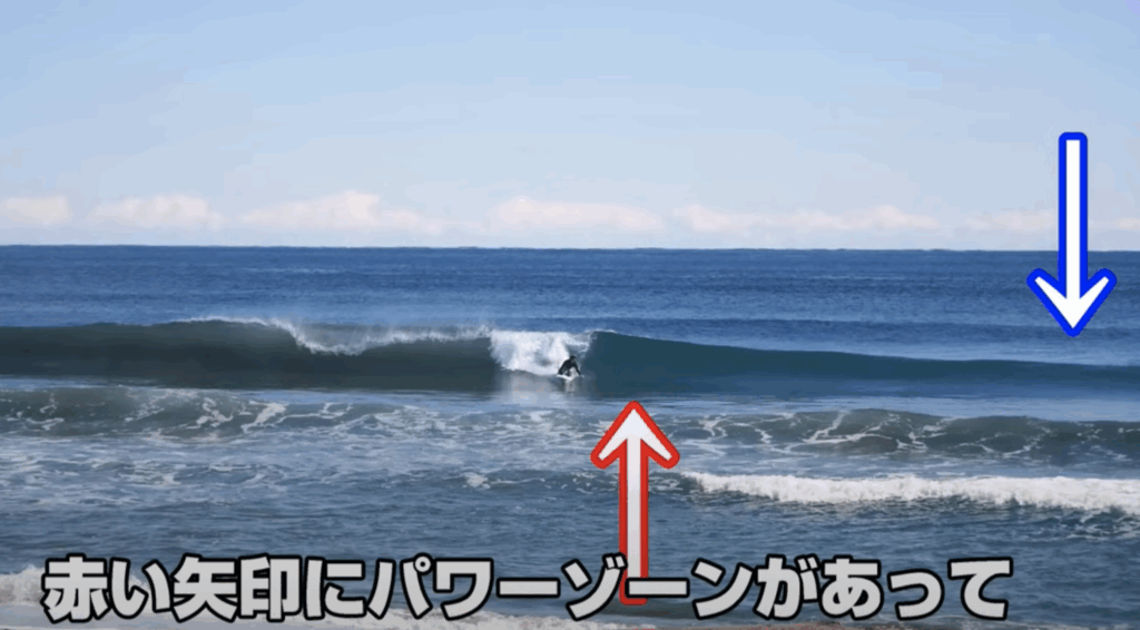 また、パワーゾーンより後ろにいても波に置いていかれてしまいます。